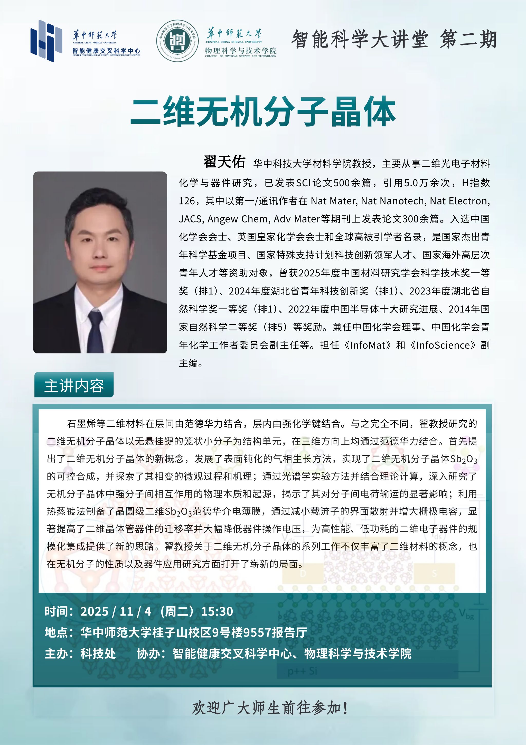 智能科学大讲堂(第二期)——二维无机分子晶体